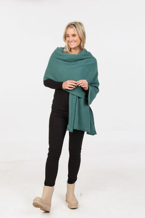 A luxuriously soft and long wrap with a rib detail finish.